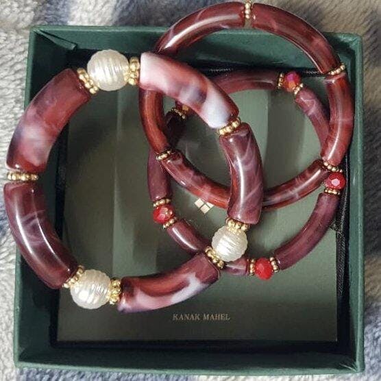 💁 Style Tip: Stack all three bracelets together and pair them with deep navy, black, or cream-colored knitwear to let the rich burgundy tone stand out. The stretch design ensures easy, comfortable wear.