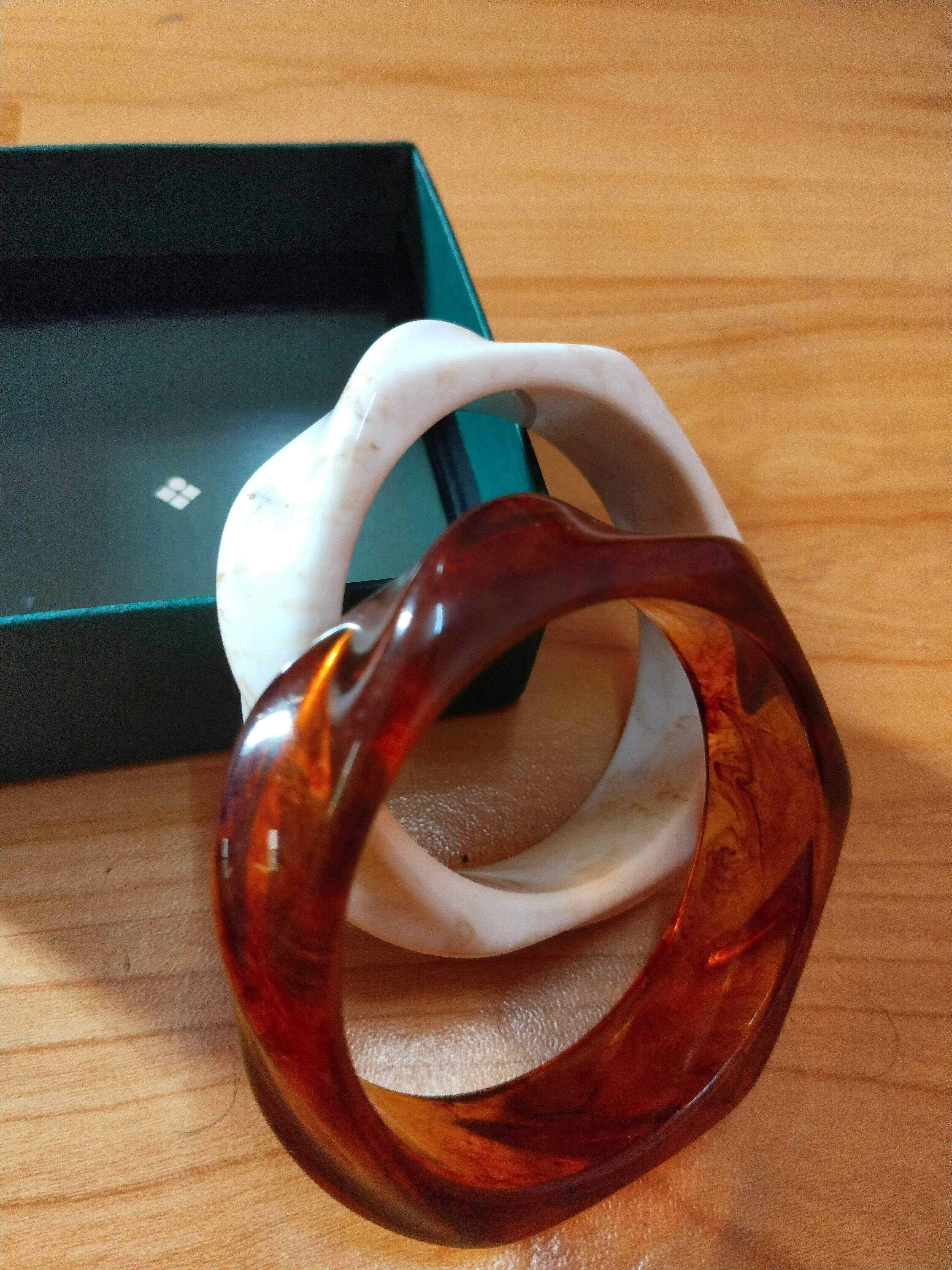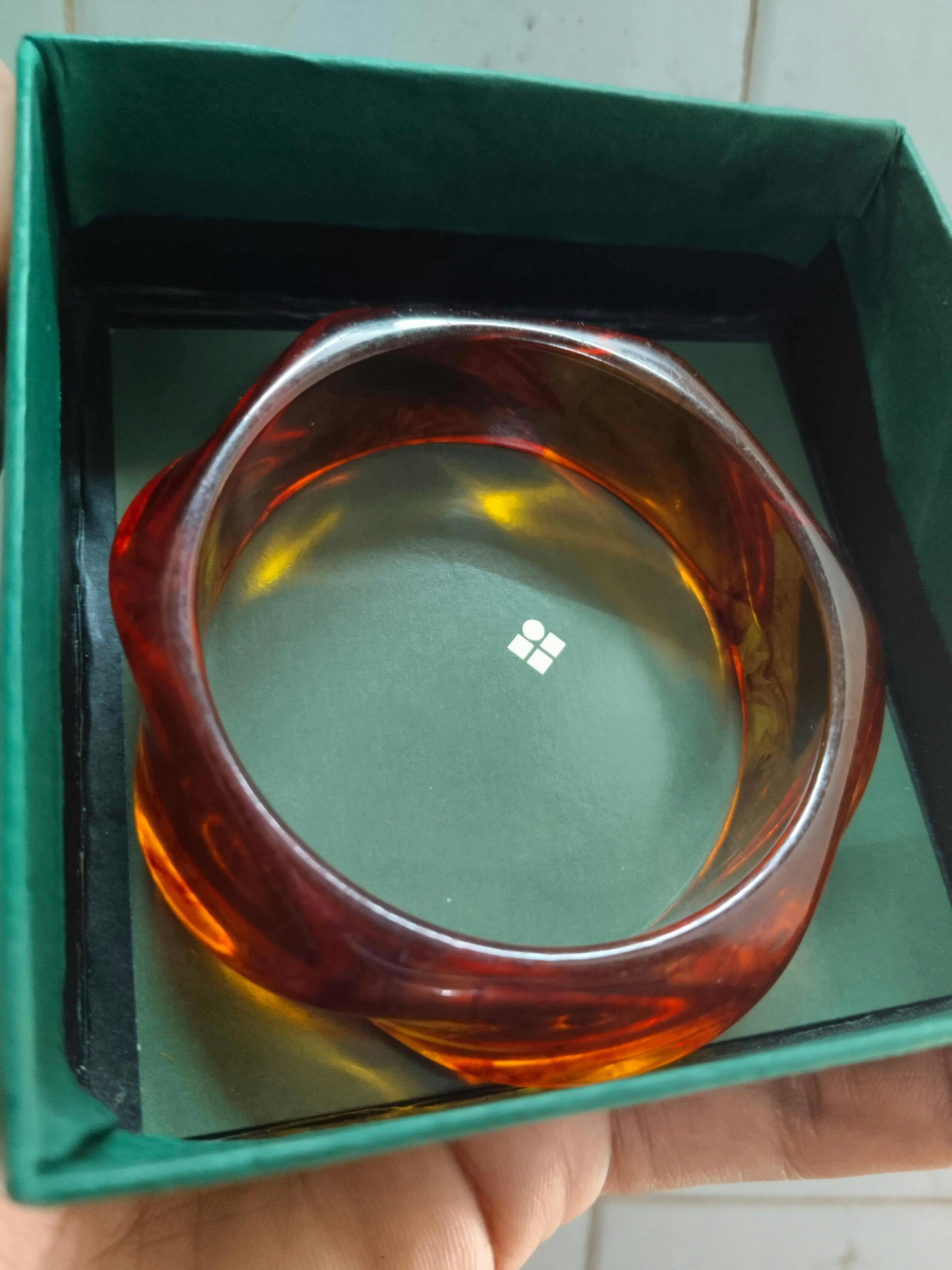 💁 Style Tip: Wear it solo for a bold look that lets the unique curve and deep, rich marbling stand out. For an easy stack, pair it with thin gold cuffs or a sleek black resin bangle.