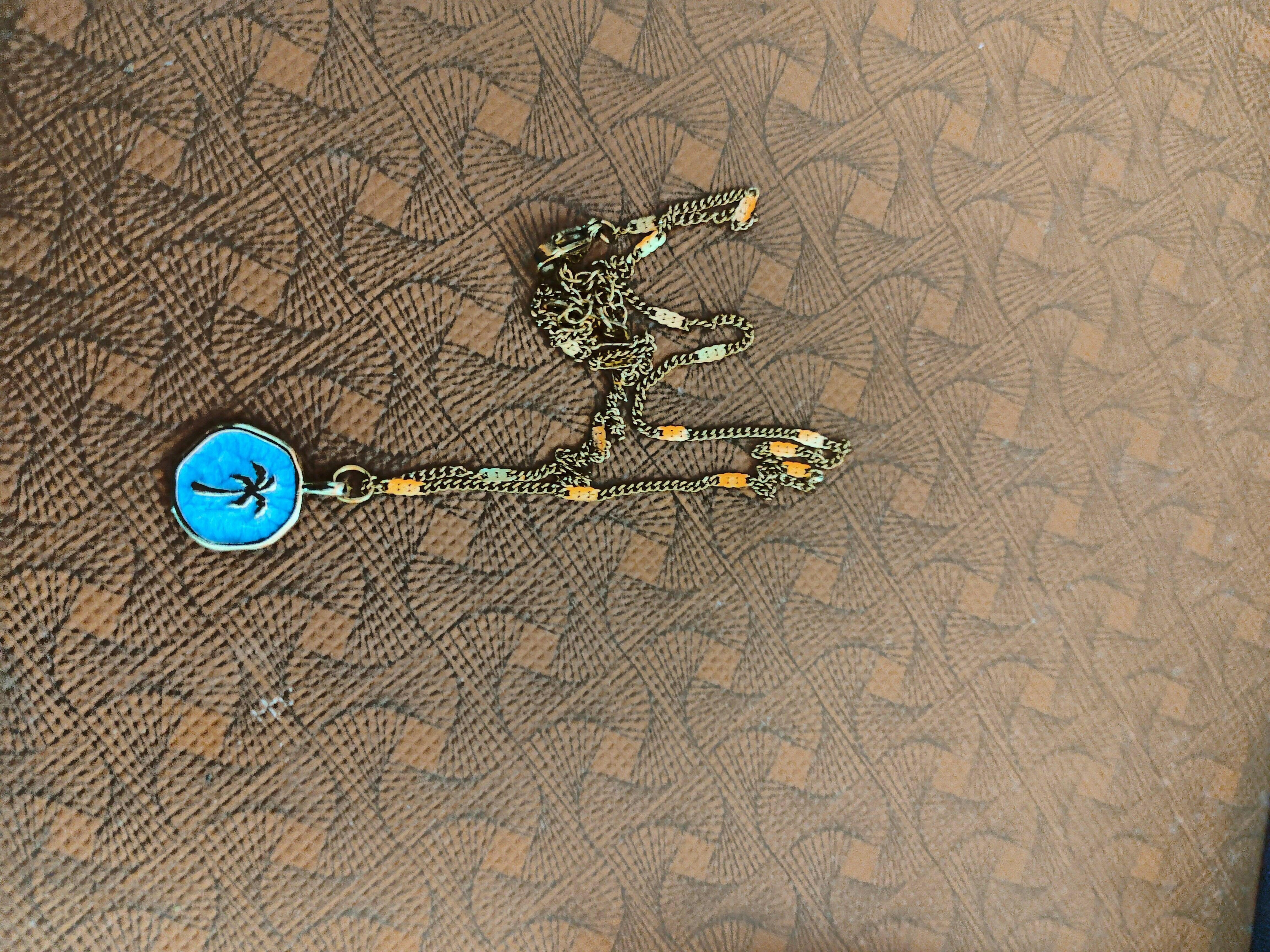 Bring the tropics to your look with the Coastal Sunburst Necklace. This charming gold-toned piece features a sunburst-edged medallion with vibrant blue enamel and a central palm tree silhouette. The delicate, textured gold chain adds a hint of vintage elegance. It’s the perfect accessory to carry those warm, vacation vibes with you every day.
